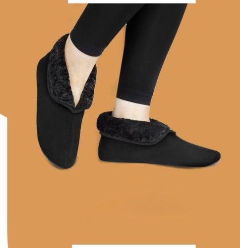 پاپوش جورابی پشمی زنانه مشکی – زیره چرمی
