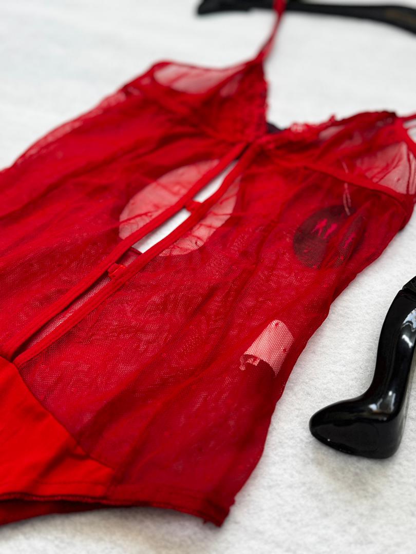 بادی توری زنانه قرمز با طراحی ظریف و بندهای نازک، یکی از جذابترین گزینهها برای خانمهاییست که به استایلهای خاص و زنانه علاقه دارند.