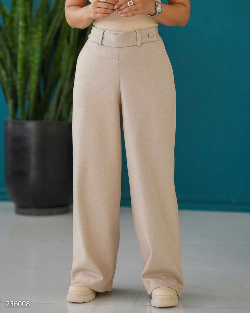 کمر شلوار بهصورت کمردار طراحی شده و در قسمت پشت، کشدوزی ظریفی دارد که باعث فیت بهتر روی بدن میشود. وجود جیب در دو طرف، علاوه بر زیبایی، کاربردی بودن آن را افزایش داده است.