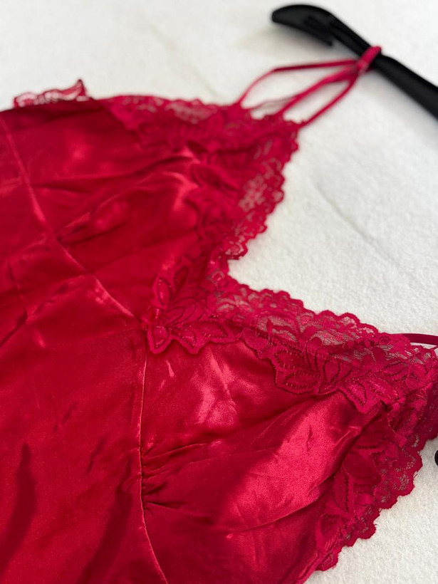 لباس خواب ساتن گیپور سایز بزرگ قرمز – شیک و لطیف مخصوص سایز 46 تا 54