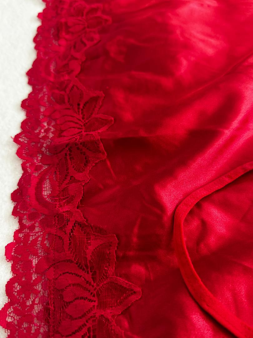 لباس خواب ساتن گیپور سایز بزرگ قرمز – شیک و لطیف مخصوص سایز 46 تا 54