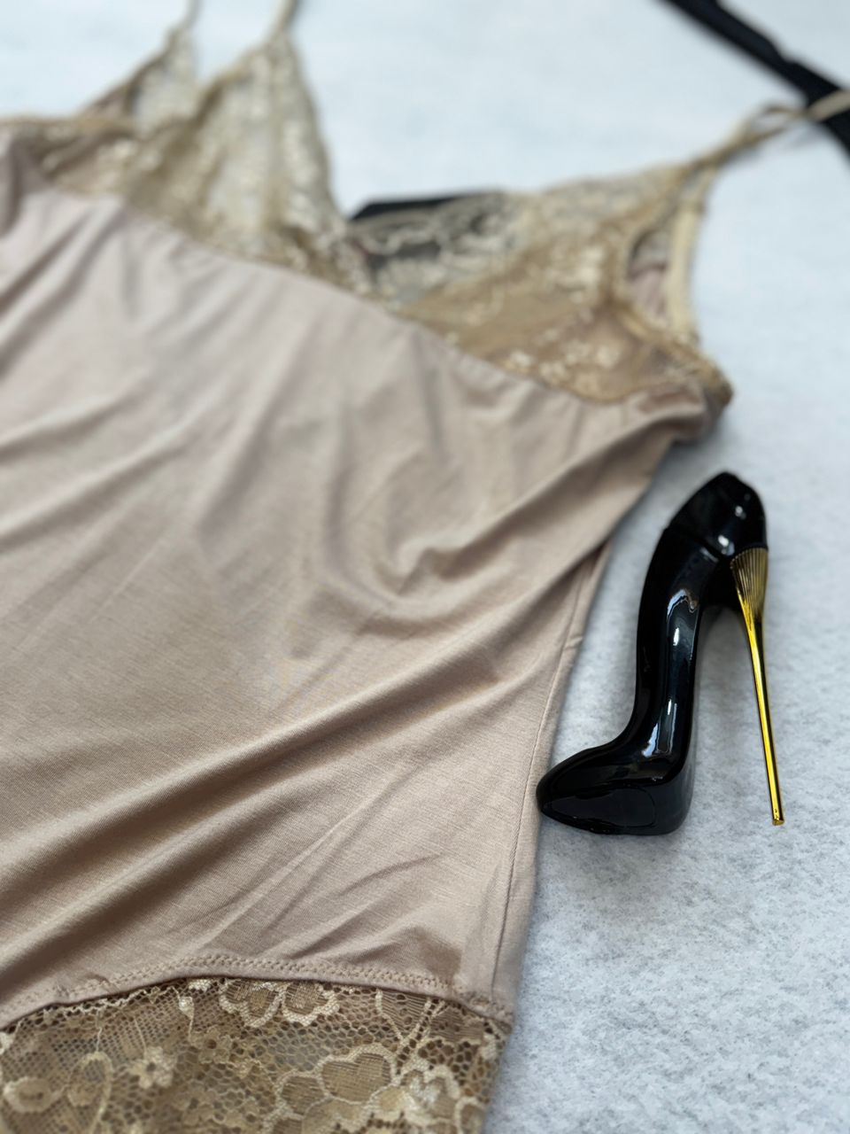بادی لباس خواب زنانه گیپور بژ | طراحی شیک و لطیف | جنس مرغوب و راحت