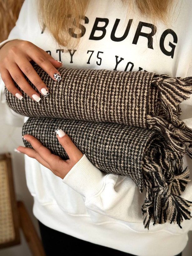 طرح چهارخانهریز که این روزها از ترندهای محبوب در دنیای مد است، باعث میشود شال بهراحتی با انواع مانتو، پالتو و استایلهای کژوال یا رسمی ست شود. این طرح علاوه بر زیبایی، جلوهای شیک و مرتب به استایل میدهد.