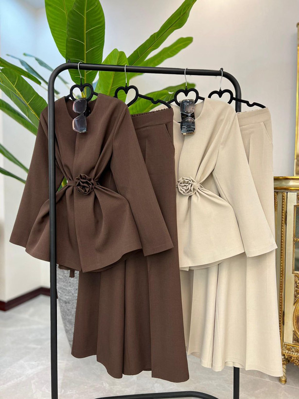 کتوشلوار بهاره زنانه با پارچه هلن، از نظر کیفیت دوخت و متریال در سطح بالایی قرار دارد. دوخت کاملاً مزونی باعث شده ایست لباس روی بدن بسیار شیک و مرتب باشد و فرم رسمی و جذابی ایجاد کند.