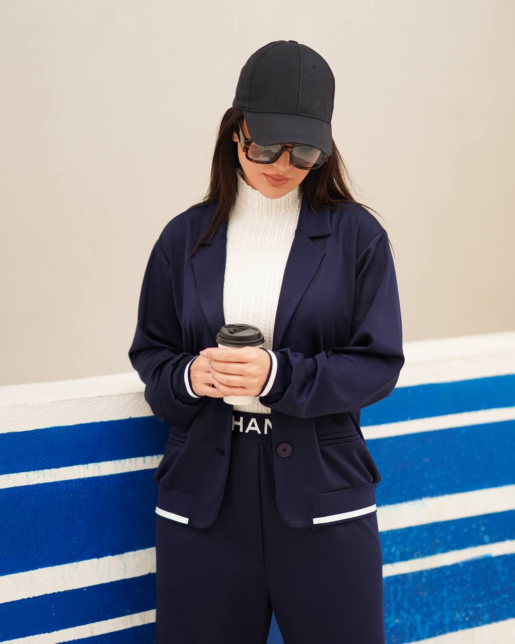 طراحی یقه E، ظاهری مدرن و شیک به ست بخشیده و فریسایز بودن آن (مناسب سایز ۳۸ تا ۴۶) آن را برای انواع اندامها کاربردی کرده است. قد استاندارد بالاتنه، آستین و شلوار، استفاده روزمره و شرکت در دورهمیها را راحت میکند.