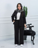 شلوار جلو پیلهدار طراحی شده که علاوه بر ایجاد فرم بهتر، پاها را کشیدهتر نشان میدهد. وجود زیپ و دکمه در جلو و کمرکش در پشت شلوار باعث فیت راحتتر روی بدن میشود. این ویژگیها باعث شده این کت شلوار زنانه علاوه بر ظاهر رسمی، راحتی بالایی هم داشته باشد.