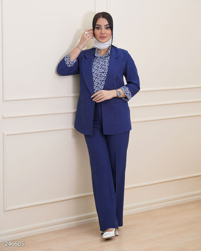 ست سهتیکه زنانه شانتون کالکشن جدید چیبپوشیم | کت، سارافون و شلوار