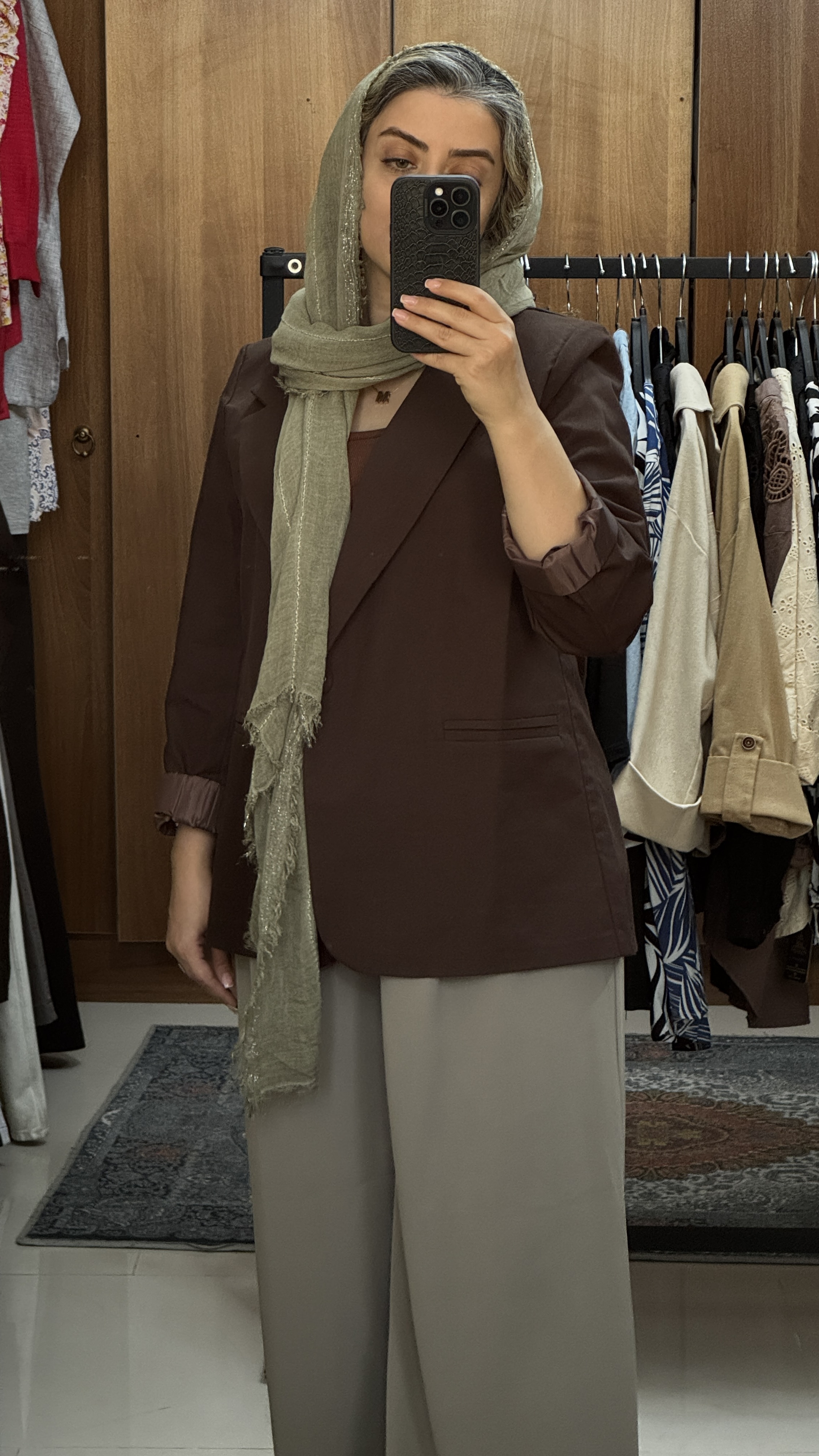 کت تابستونی لینن زنانه قهوای وسرمه ای