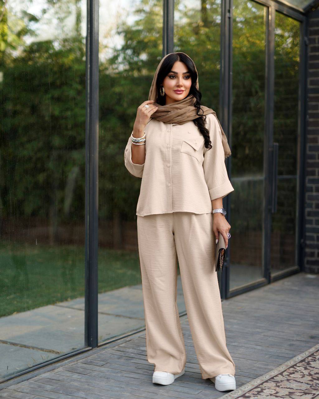 بلوزشلوارست تابستونی دخترانه زنانه اسپرت لینن لوک