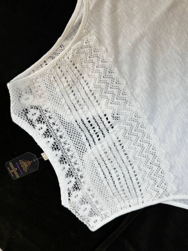 تاپ سفید ترکیب نخ پنبه وخامه دوزی زنانه